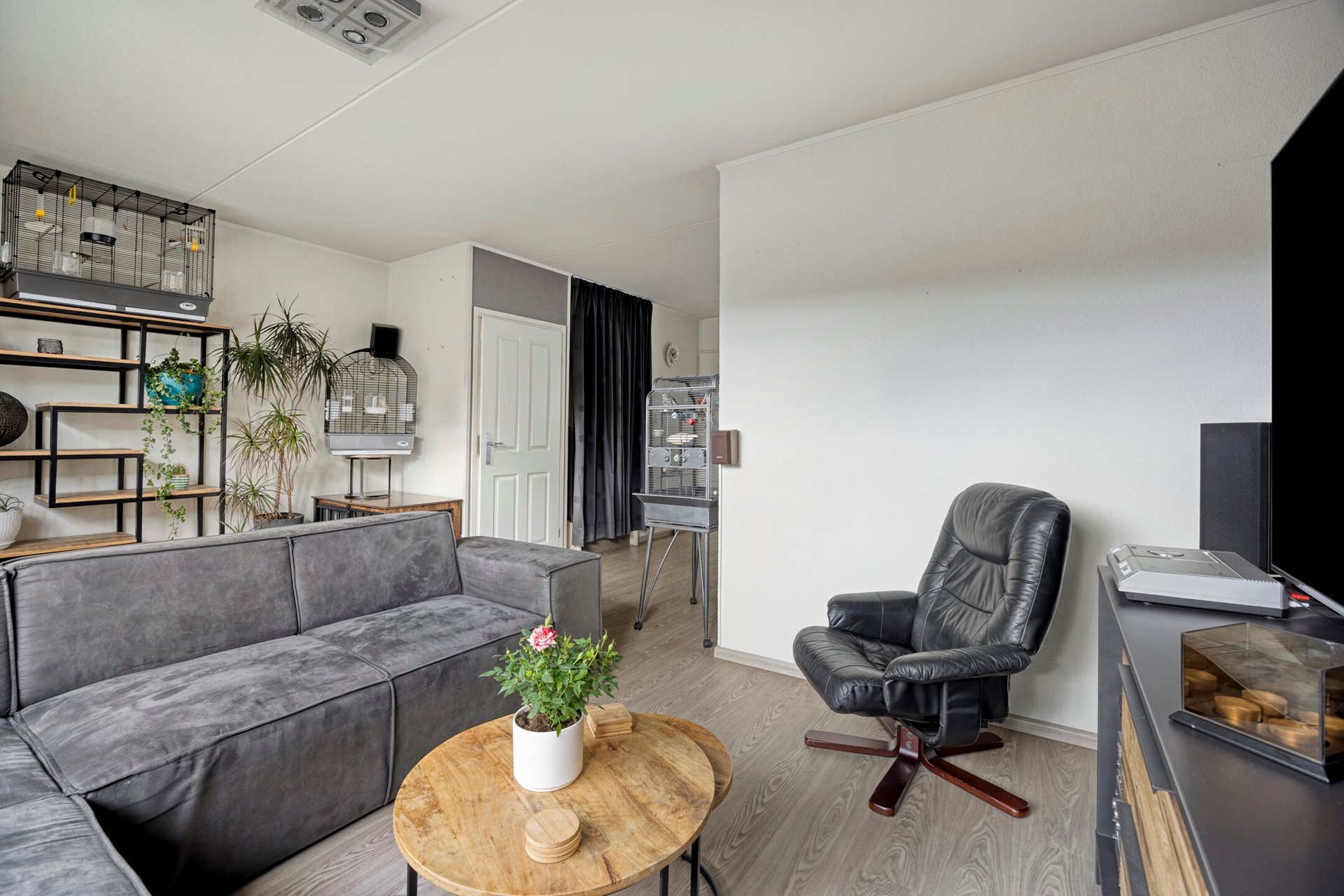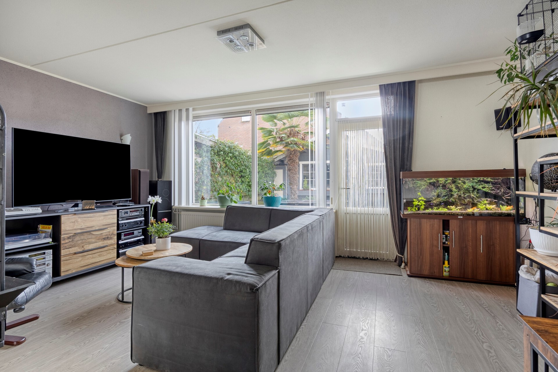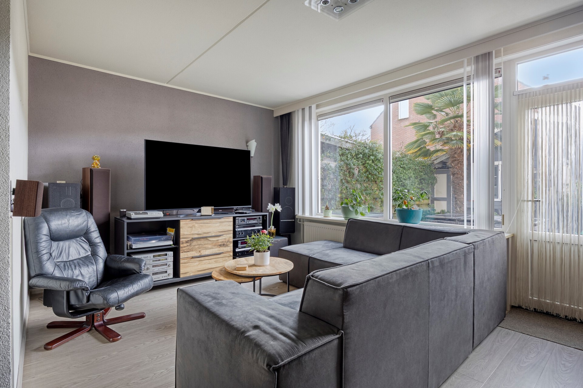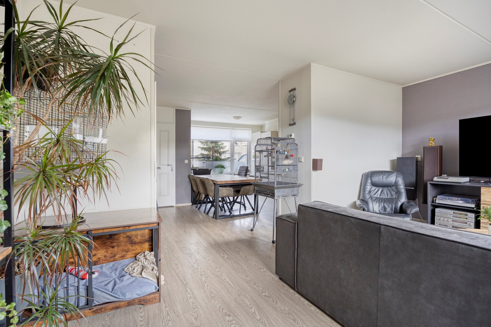 De woonkamer is over de volle breedte aan de achterzijde van de woning gelegen. Een brede pui zorgt voor veel lichtinval.