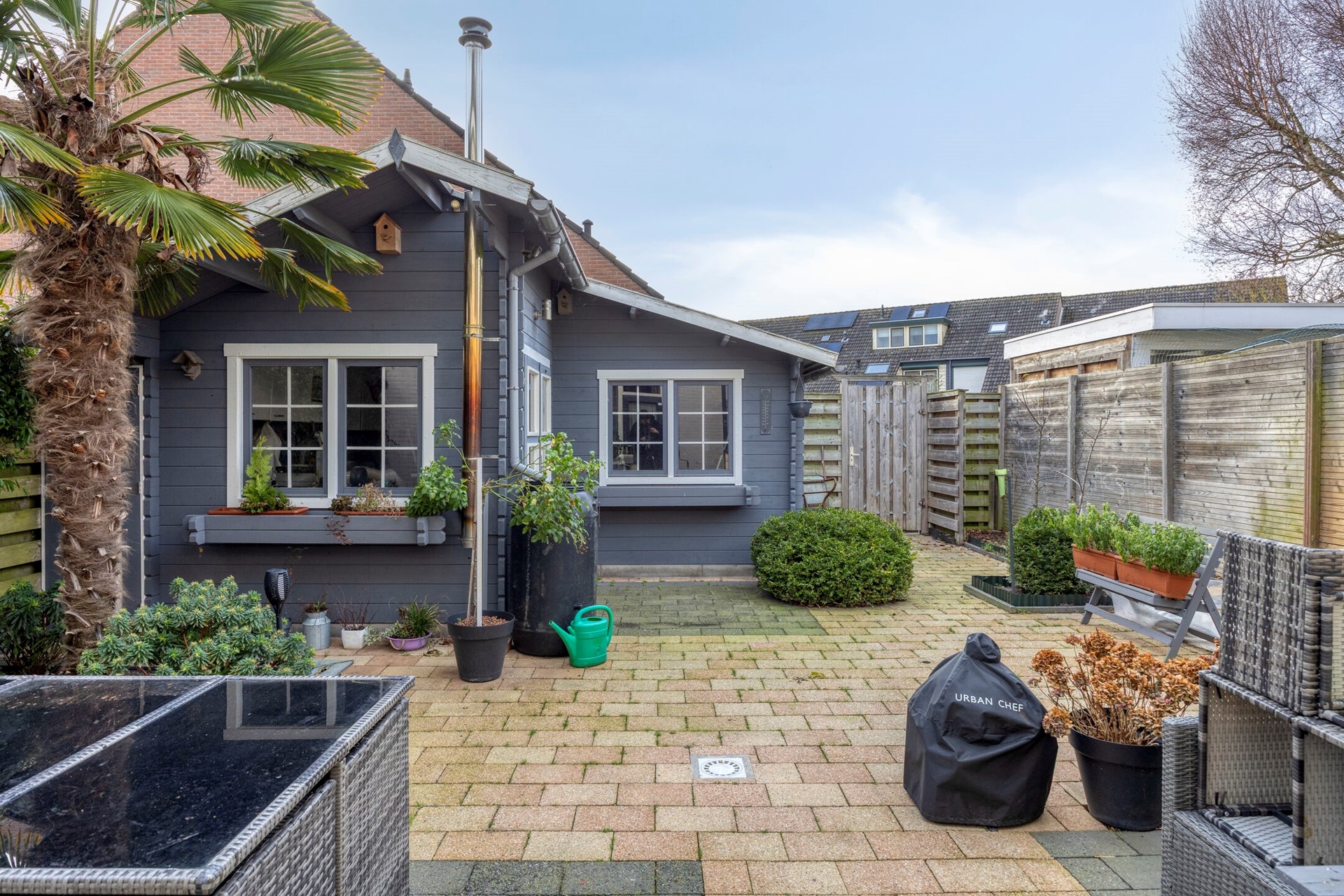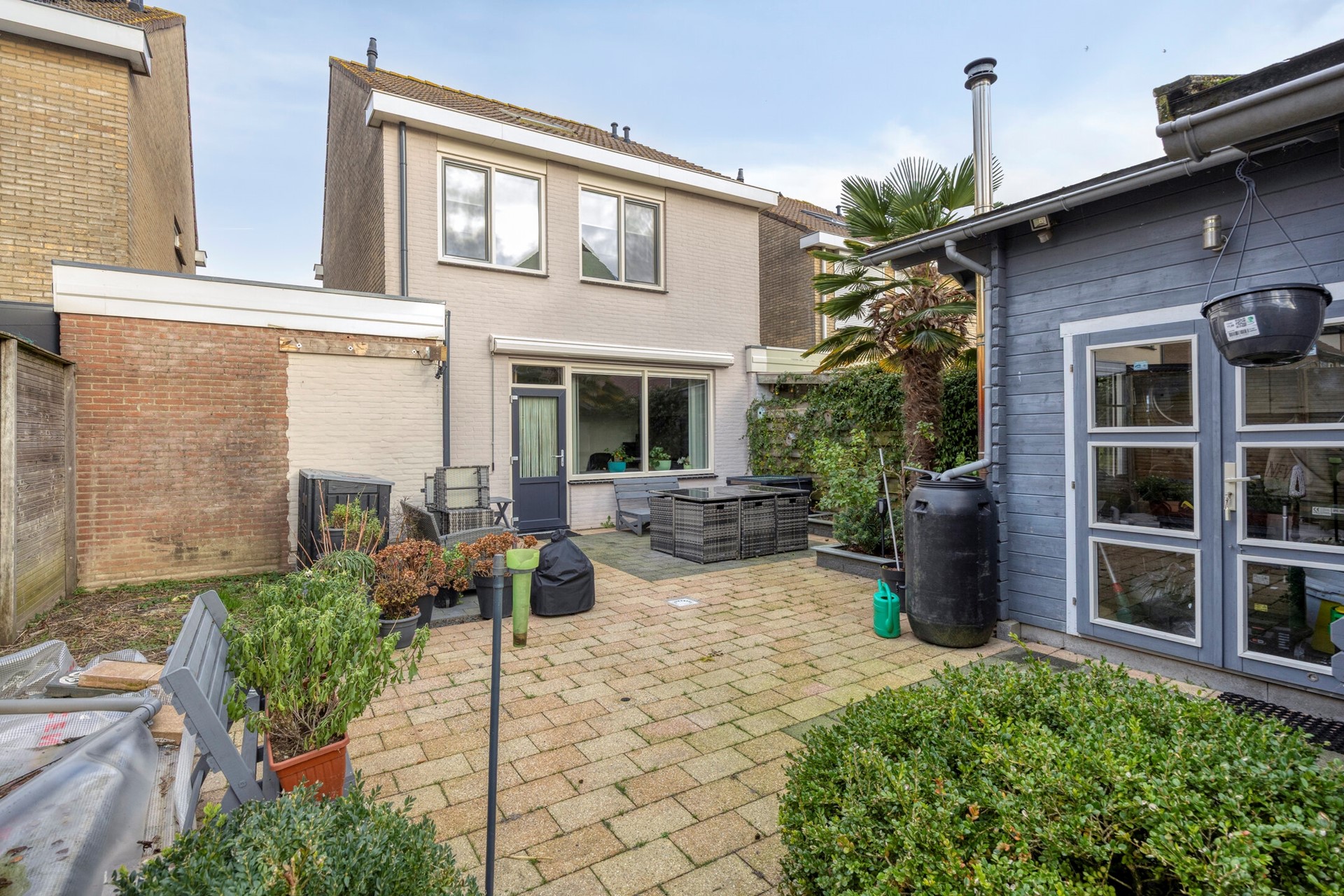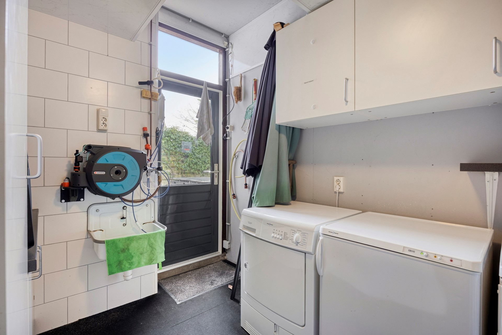 De garage, met aparte bijkeuken/berging, is buitenom te bereiken. In de achtertuin is nog een flinke berging te vinden. De achtertuin is netjes uitgevoerd en onderhoudsvriendelijk ingericht.