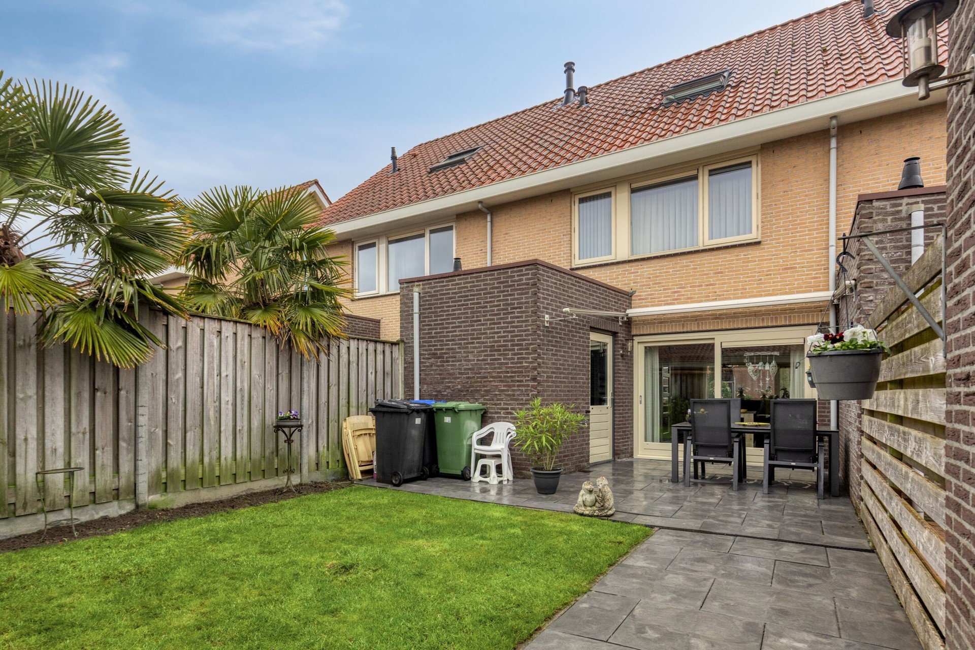 De achtertuin is keurig en onderhoudsvriendelijk aangelegd. Achter in de tuin staat een stenen berging, met veel opbergruimte. Via een achterom/brandgang is de achtertuin ook toegankelijk.