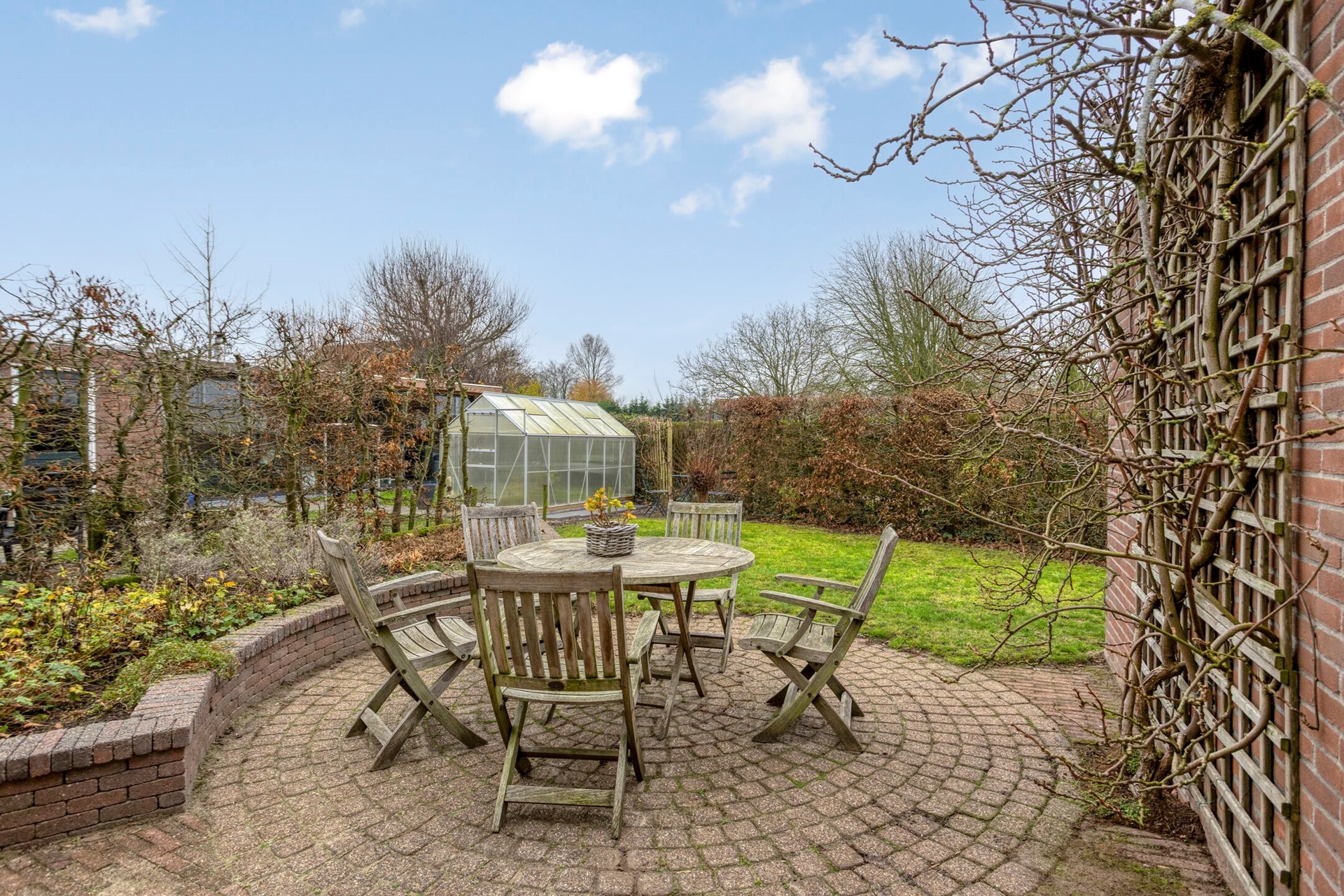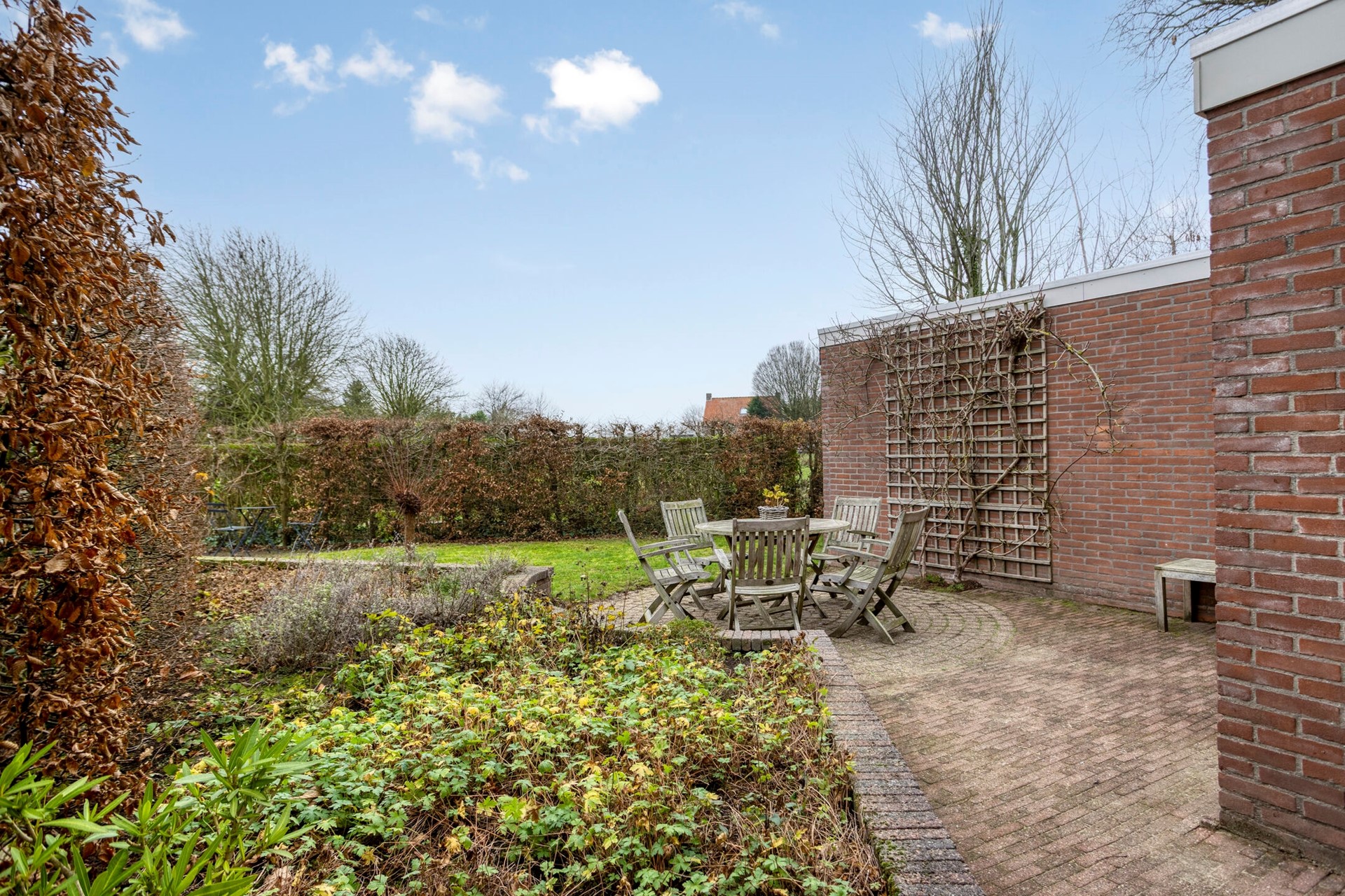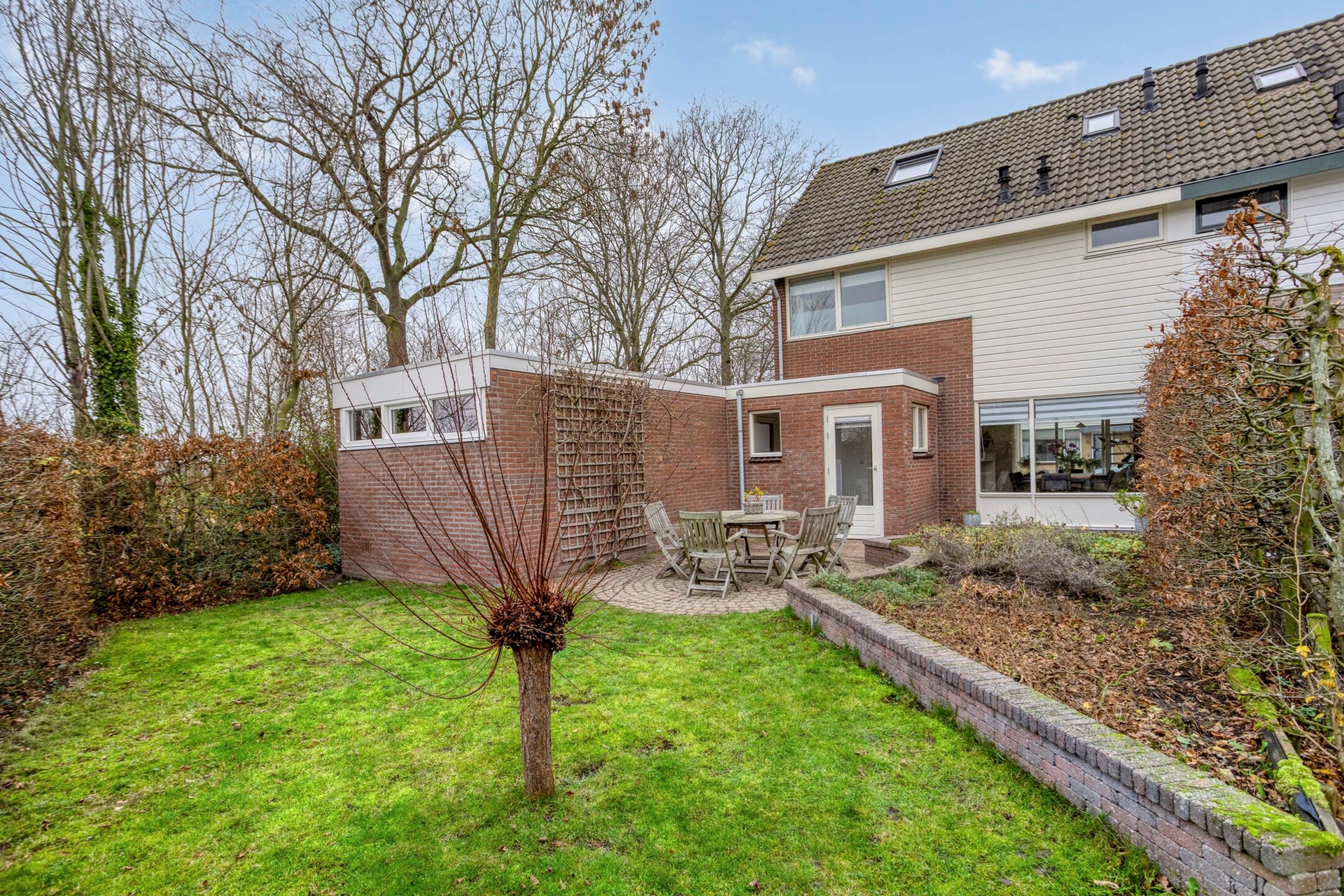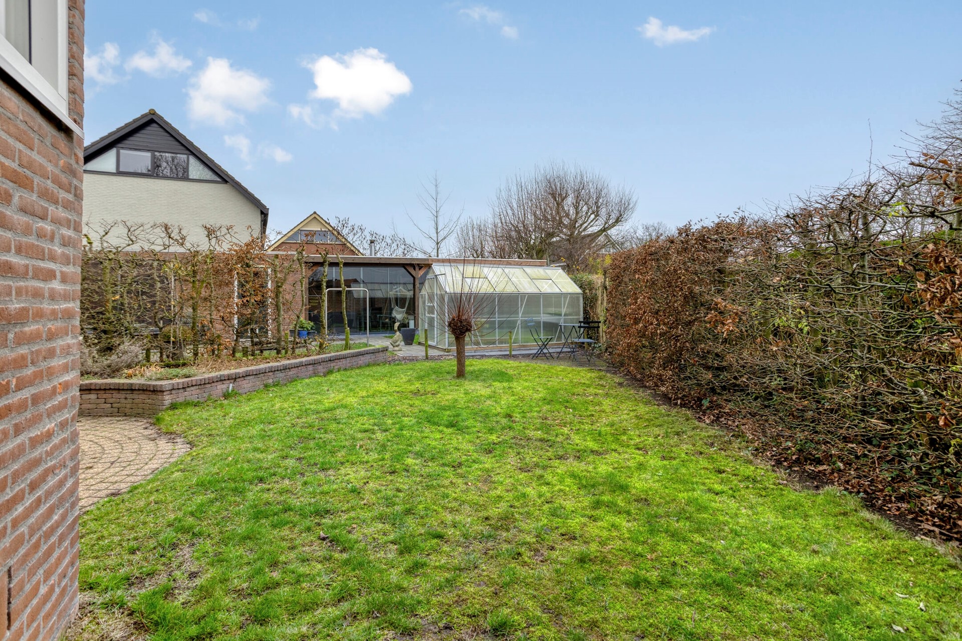 De achtertuin is netjes aangelegd en bijgehouden. Aan de achterzijde grenst de tuin enkel aan een wandelpad met hierachter de Westdijk. U zit echt aan de rand van het dorp.