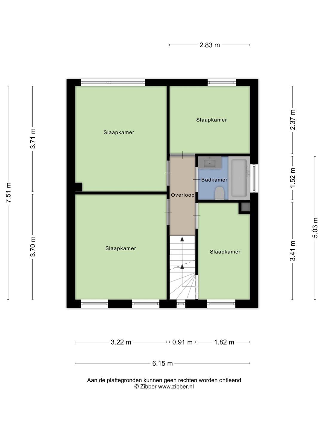 Op de eerste verdieping zijn 3 slaapkamers gelegen met prima afmetingen. De badkamer is compleet uitgevoerd met een ligbad/douche, wastafel en toilet.