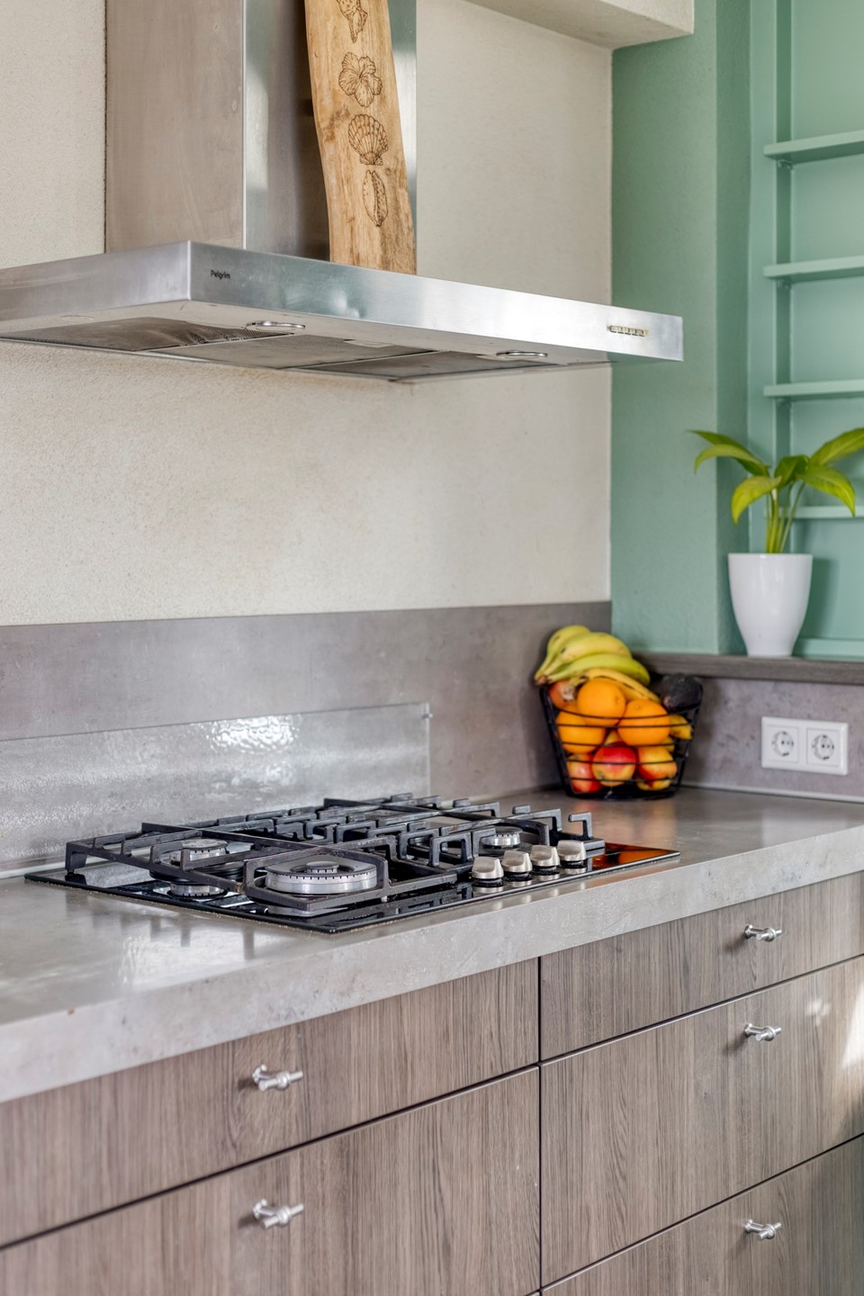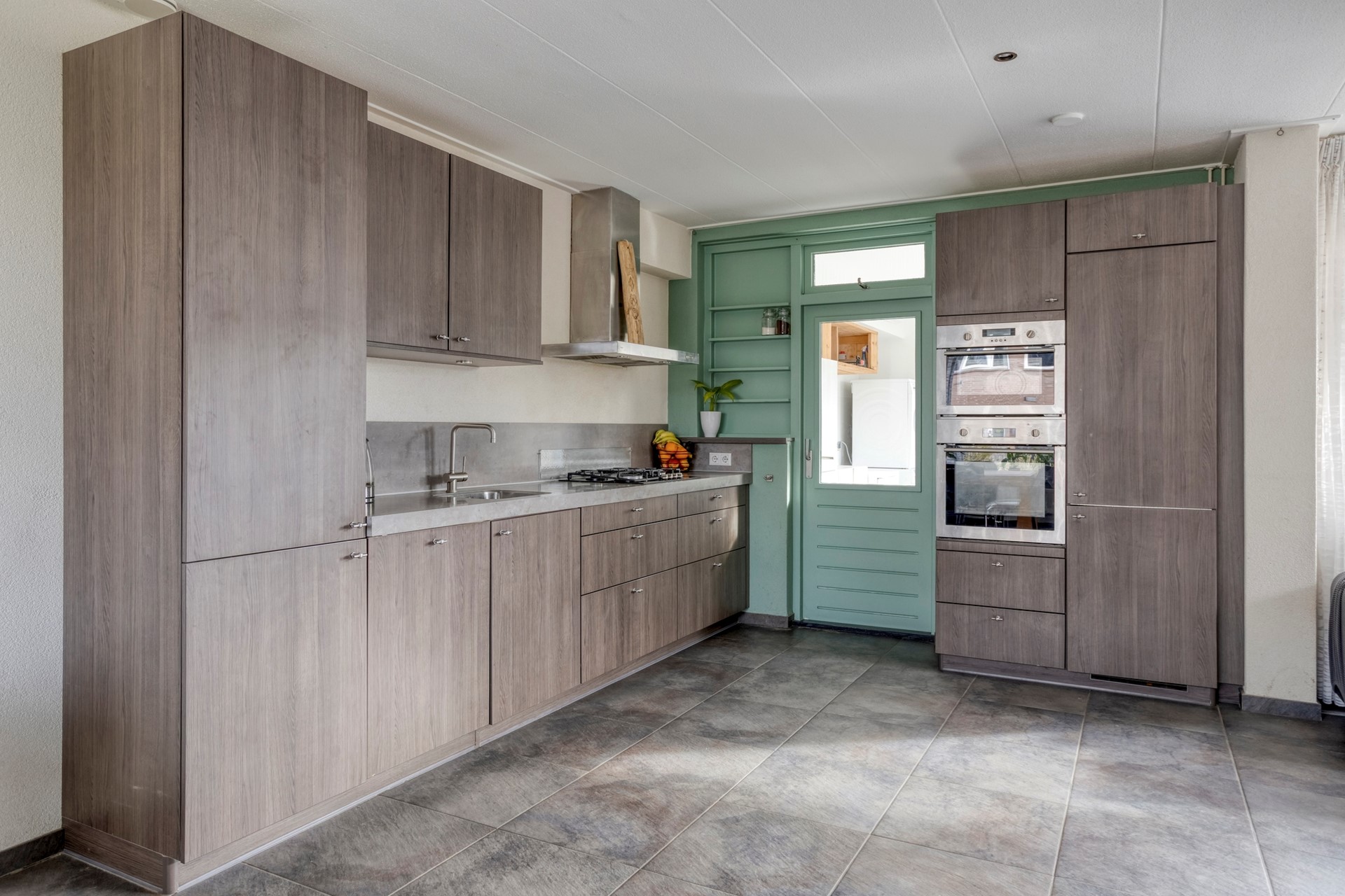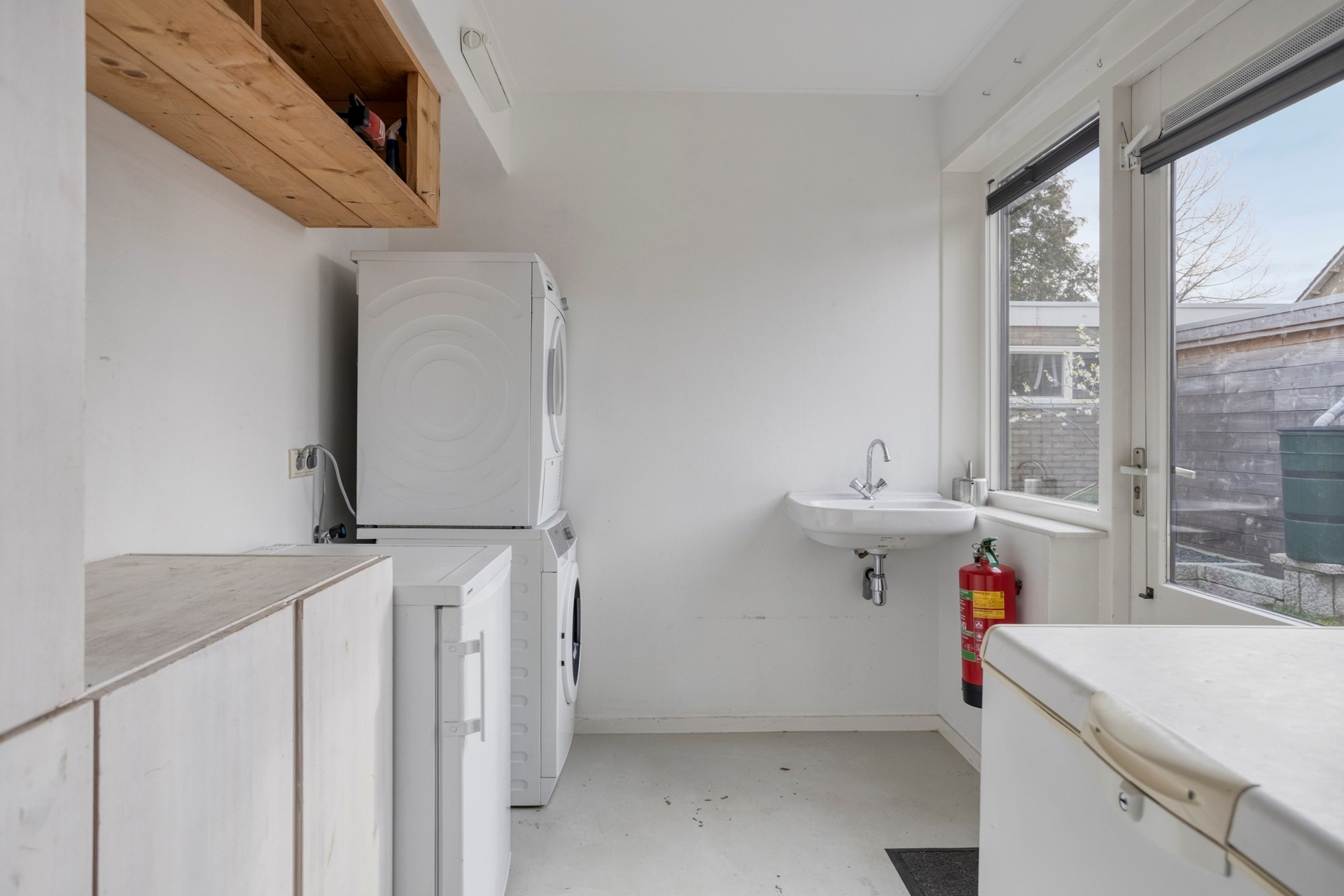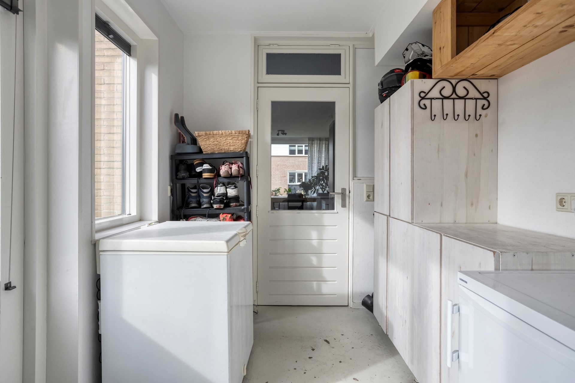 Aansluitend aan de keuken is de flinke bijkeuken. Deze biedt, naast de witgoedaansluitingen, veel opbergruimte.