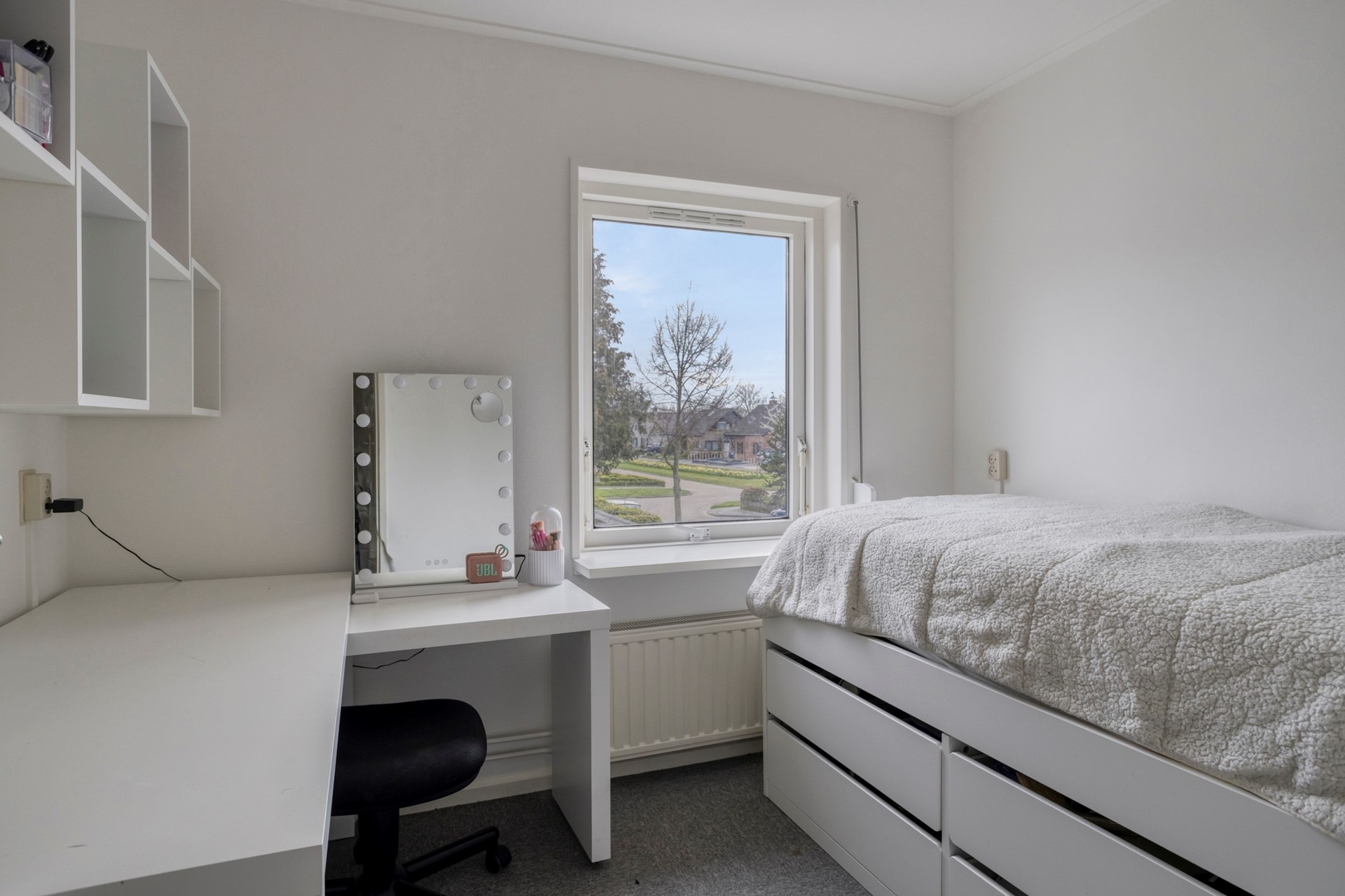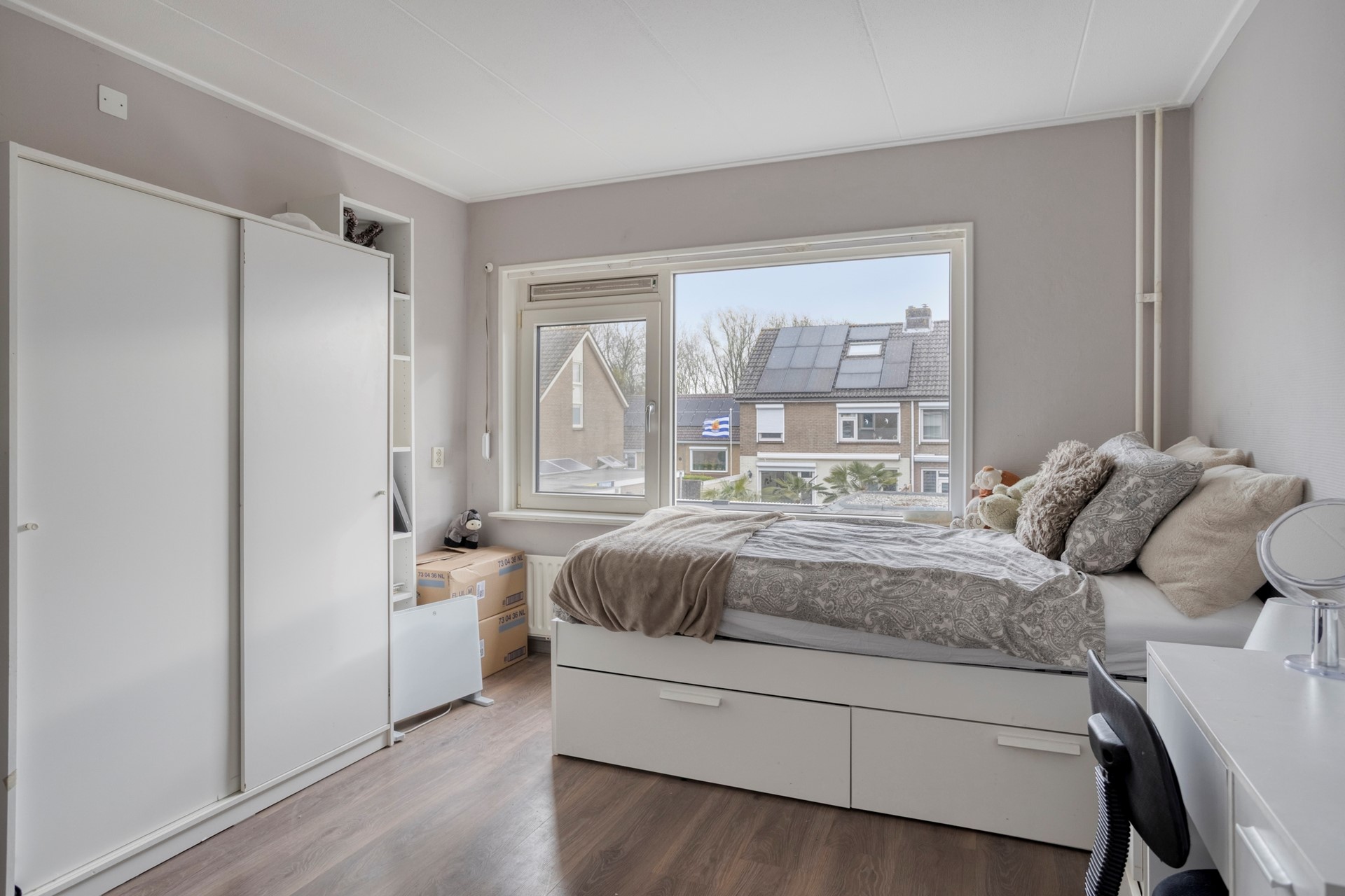 Via de overloop met werk-/studyhoek komt u met een vaste trapopgang op de tweede verdieping. Hier is de vierde slaapkamer gesitueerd.