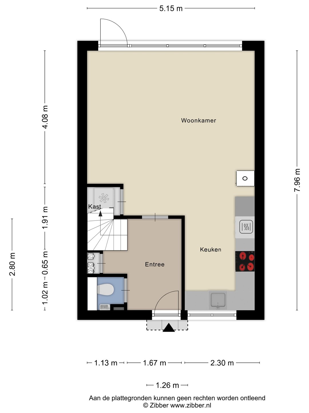 U komt binnen in de hal, met toilet, meterkast en trapopgang, vervolgens betreedt u de woonkamer. De woonkamer is over de volle breedte aan de achterzijde gelegen. Een brede pui met buitendeur zorgt voor veel lichtinval.