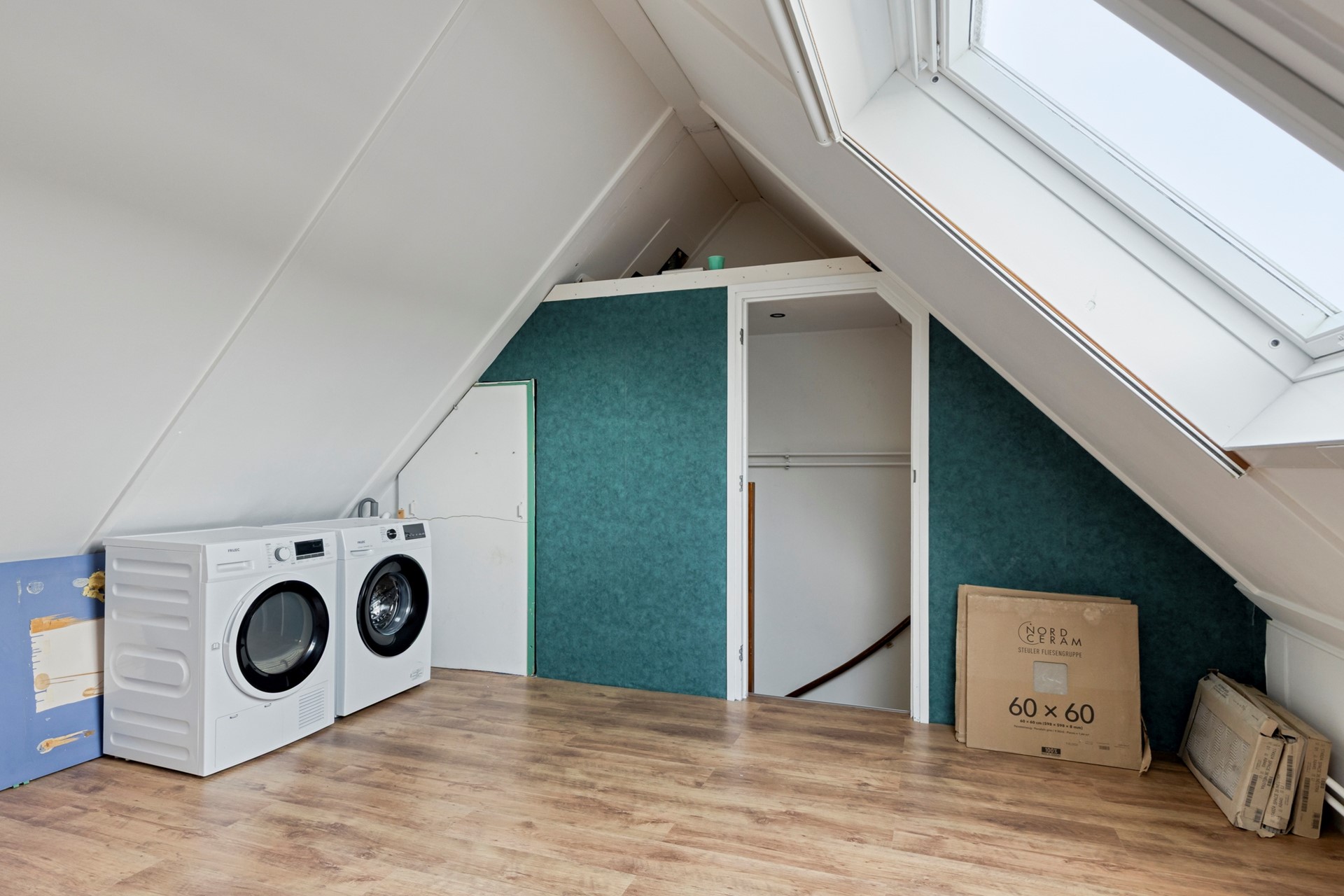 De tweede verdieping is met een vaste trapopgang te bereiken en biedt een ruime vierde slaapkamer. Hier zijn tevens de witgoedaansluitingen voorzien.
